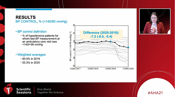 “The weighted average of blood pressure control was 60.5% in 2019, and it dropped 7.2% to 53.3% in 2020,” said Alanna M. Chamberlain, PhD (Mayo Clinic, Rochester, MN), in a late-breaking science session last weekend at the virtual American Heart Association (AHA) 2021 Scientific Sessions. The data also show a decline in timely follow-up visits compared with 2019.