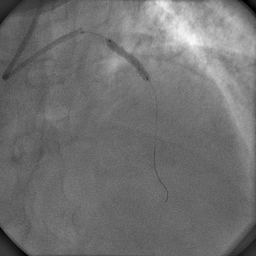 A 6 r XB guiding catheter was chosen to cannulate the left coronary artery. A PT2 hydrophilic guidewire was used to cross the totally occluded LAD lesion with a 2x10mm Sapphire balloon for support (Figure 3). The occluded segment was dilated using the same balloon at 18atm. A 3x25mm Cre 8 stent (DES, CID, Italy) was deployed in the ostioproximal LAD at 18atm (Figure 4) and post-dilated using a 3.5x10mm Sapphire NC at 20 atm (Figure 5). TIMI III flow was established (Figure 6). The patient was hemodynamically stable, and a minimum amount of contrast was used to prevent much volume overload. Then a 6Fr JR guiding catheter was selected in an attempt to engage the right coronary artery, but extreme coiling and kinking made it impossible to cannulate the RCA properly. So keeping the diagnostic guidewire in situ with the catheter tip far from RCA ostium, the PT2 guidewire was used to wire the RCA with a 2x10 mm balloon support (Figure 7, Figure 8). Keeping the balloon in the proximal RCA, the guiding catheter could be advanced over the balloon catheter to engage the right coronary artery properly. Using a buddy wire, the lesion was dilated with the same balloon at 14atml and a 2.75x23mm CC Flex (CoCr) stent was deployed at 18atm (Figure 9). Distal TIMI III flow as achieved (Figure 10).