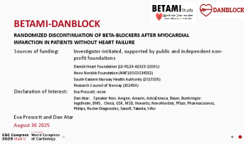 Prescott acknowledged the relatively small absolute reduction in risk in BETAMI-DANBLOCK, but said “many trials nowadays have very small absolute effects.” Nonetheless, these can help inform patient-physician discussions around therapy, she said, adding that their group plans to evaluate quality-of-life measures and side effects to help better inform decisions.