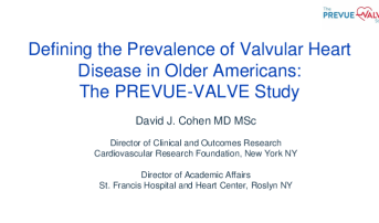 Cohen DJ. Defining the prevalence of valvular heart disease in older Americans: the PREVUE-VALVE study. Presented at: TCT 2025. October 27, 2025. San Francisco, CA.