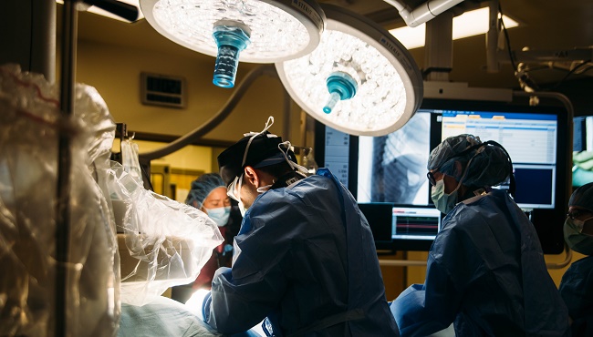 The facility, said Scansen, also has 3-D rotational angiography as well as MR and CT fusion, which is “essentially all of the exact same equipment that would be in a state-of-the-art cath lab.” And it is continuing to evolve, he noted. While the lab already has an older CT scanner in place, an upgrade to the newest-generation CT scanner is in the works for next year.