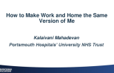 Presentation Interventional Complications 2025 How to Make Work and Home the Same Version of Me Presenter: Kalaivani Mahadevan July 11, 2025