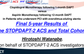 Presentation TCT 2025 Clopidogrel Monotherapy Following 1-Month DAPT vs. Aspirin Monotherapy Following 12-Month DAPT After PCI in ACS Patients: Final 5-Year Results of the STOPDAPT-2 ACS Trial Presenter: Hirotoshi Watanabe October 25, 2025