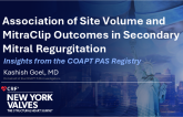 Presentation NY Valves 2025 Association of Site Volume and MitraClip Outcomes in Secondary Mitral Regurgitation: Insights From the COAPT PAS Registry Presenter: Kashish Goel June 25, 2025
