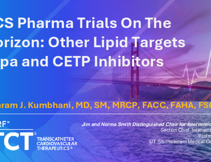 Presentation TCT 2025 ACS Pharma Trials On The Horizon: Other Lipid Targets - Lpa and CETP Inhibitors Presenter: Dharam J. Kumbhani October 26, 2025 REGISTER for free or LOG IN to view this content TCT 2025 Up Next Presentation TCT 2025 ACS Pharma Trials On The Horizon: Antiplatelets Duration and SAPT Presenter: Marco Valgimigli October 26, 2025 More slides + Presentation TCT 2025 Pre-Procedural Planning for CTO PCI: Indications and Workup Presenter: Novalia Purnama Purnama Sidik October 26, 2025 Presentation TCT 2025 ACS Pharma Trials On The Horizon: Addressing The Anti-inflammatory Cascade Presenter: Duk-Woo Park October 26, 2025 We Recommend Disclosures <p>Nothing to disclose</p>