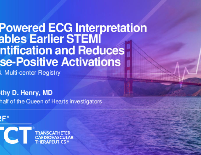 Presentation TCT 2025 AI-Enabled ECG Interpretation in STEMI: Findings from a Multicenter U.S. Registry Presenter: Timothy D. Henry October 28, 2025 REGISTER for free or LOG IN to view this content TCT 2025 Up Next Presentation TCT 2025 A Prospective, Randomized Clinical Trial of Hemodynamic Support with a Newly Developed pVAD Versus IABP in Patients Undergoing High-Risk Percutaneous Coronary Intervention Presenter: Rui Wang October 28, 2025 More slides + Presentation TCT 2025 Randomized Comparison of the Supraflex CruzTM vs. SYNERGYTM Drug-Eluting Stents: The Multivessel TALENT Randomized Trial Presenter: Patrick W. Serruys October 28, 2025 Presentation TCT 2025 iFR Versus Angiography-Guided CABG: 3-Year Results of the iCABG Randomized Trial Presenter: Rasa Ordiene October 28, 2025 We Recommend Disclosures <p>Nothing to disclose</p>