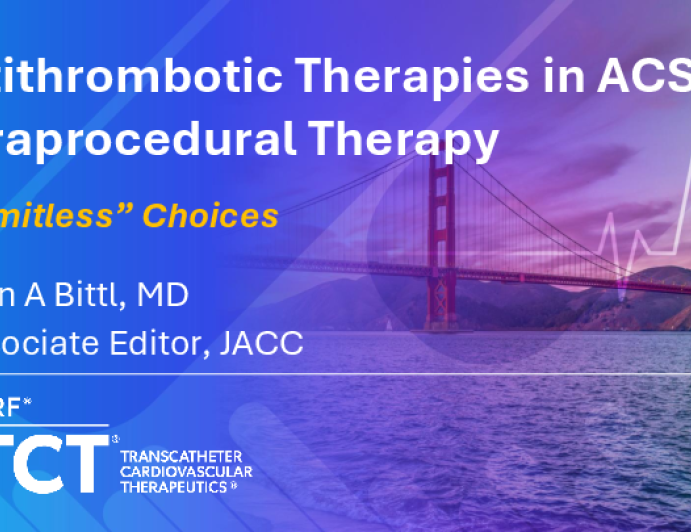 Presentation TCT 2025 Antithrombotic Therapies in ACS: Intraprocedural Therapies - Limitless Choices Presenter: John A. Bittl October 26, 2025 REGISTER for free or LOG IN to view this content TCT 2025 Up Next Presentation TCT 2025 Antithrombotic Therapies in ACS: Choosing Your SAPT For The Long Haul Presenter: Marco Valgimigli October 26, 2025 More slides + Presentation TCT 2025 Antithrombotic Therapies in ACS: Pre-treatment - Underrated or Overused? Presenter: Salvatore Brugaletta October 26, 2025 Presentation TCT 2025 Retrograde Techniques for CTO PCI: An Evolution in Balancing Risk and Reward Presenter: Stephane Rinfret October 26, 2025 We Recommend Disclosures <p>Nothing to disclose</p>