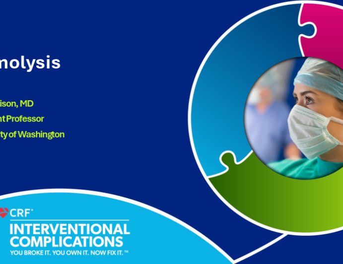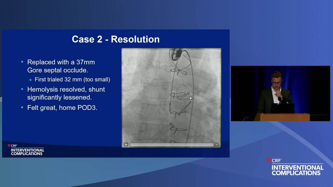 Presentation Interventional Complications 2025 Case 12: PVL Closure Causing Hemolysis Presenter: David Elison July 10, 2025 REGISTER for free or LOG IN to view this content Interventional Complications 2025 Up Next Presentation Interventional Complications 2025 Case Presentation Presenter: Christine J. Chung July 10, 2025 More slides + Presentation Interventional Complications 2025 Equipment List Presenter: Christine J. Chung July 10, 2025 Presentation Interventional Complications 2025 Case 13: TTVR Mishap Presenter: James M. McCabe July 10, 2025 We Recommend Disclosures Nothing to disclose Video Player is loading.Play VideoPlaySkip BackwardSkip ForwardMuteCurrent Time 0:00/Duration 0:00Loaded: 0%0:00Stream Type LIVESeek to live, currently behind liveLIVERemaining Time -0:00 1xPlayback Rate2x1.75x1.5x1.25x1x, selected0.75x0.5xChaptersChaptersDescriptionsdescriptions off, selectedCaptionscaptions settings, opens captions settings dialogcaptions off, selectedAudio TrackPicture-in-PictureFullscreenThis is a modal window.Beginning of dialog window. Escape will cancel and close the window.TextColorWhiteBlackRedGreenBlueYellowMagentaCyanOpacityOpaqueSemi-TransparentText BackgroundColorBlackWhiteRedGreenBlueYellowMagentaCyanOpacityOpaqueSemi-TransparentTransparentCaption Area BackgroundColorBlackWhiteRedGreenBlueYellowMagentaCyanOpacityTransparentSemi-TransparentOpaqueFont Size50%75%100%125%150%175%200%300%400%Text Edge StyleNoneRaisedDepressedUniformDrop shadowFont FamilyProportional Sans-SerifMonospace Sans-SerifProportional SerifMonospace SerifCasualScriptSmall CapsResetDoneClose Modal DialogEnd of dialog window.Close Modal DialogThis is a modal window. This modal can be closed by pressing the Escape key or activating the close button.