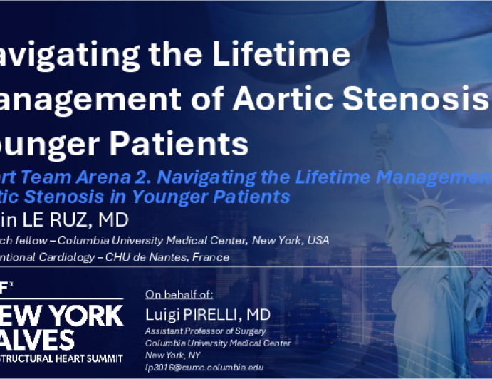 Presentation NY Valves 2025 Case Presentation: A Young Low-Risk Patient With Symptomatic Severe Tri-Leaflet Aortic Stenosis Presenter: Robin Le Ruz June 25, 2025 REGISTER for free or LOG IN to view this content NY Valves 2025 Up Next Presentation NY Valves 2025 Underutilized – COAPT and RESHAPE-HF2 Are Just the Beginning Presenter: Ralph Stephan von Bardeleben June 25, 2025 More slides + Presentation NY Valves 2025 MATTERHORN Lessons: Is There a Role for Surgery in Functional MR? Presenter: Volker Rudolph June 25, 2025 Presentation NY Valves 2025 Managing AS Patients Before Symptoms or Severe Disease: Insights Into Current Practice Presenter: Patrick T. O'Gara June 25, 2025 We Recommend Disclosures Nothing to disclose