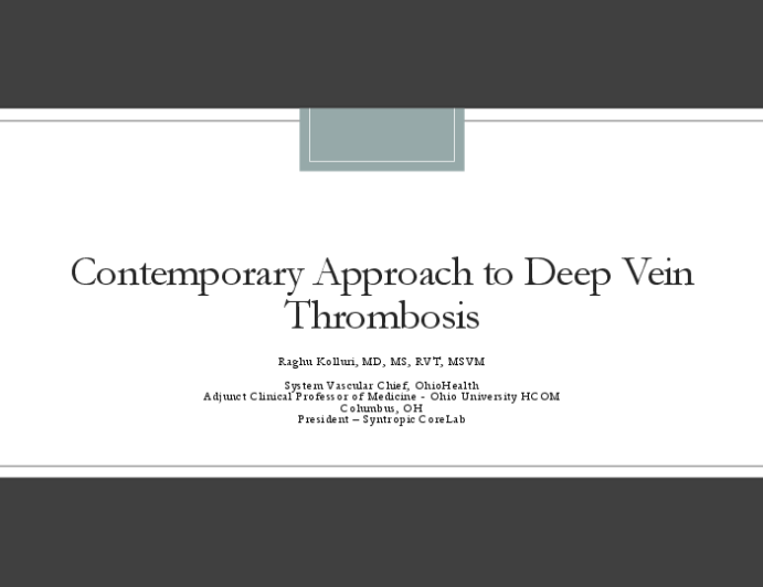 Contemporary Approach to Deep Vein Thrombosis