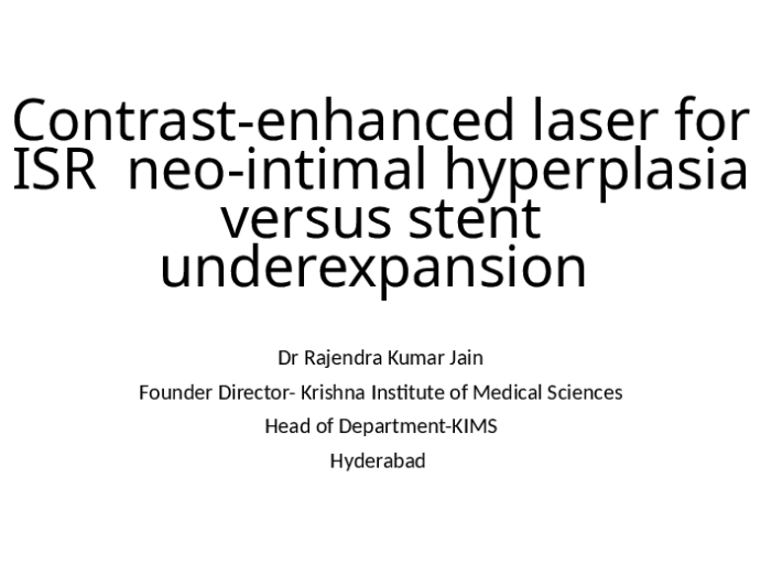 Presentation TCT India 2025 Contrast-enhanced laser for ISR – neo-intimal hyperplasia versus stent under-expansion Presenter: Rajendra Kumar Jain July 25, 2025 REGISTER for free or LOG IN to view this content Coronary Imaging & Physiology Presentation TCT India 2025 Up Next Presentation TCT India 2025 I would re-stent here Presenter: Rajneesh Kapoor July 25, 2025 More slides + Presentation TCT India 2025 Case Presentation Presenter: Jabir Abdullakutty July 25, 2025 Presentation TCT 2025 TCT 1779: Hybrid Approach, High Risk MVD PCI With LVAD Support, IVL, IVUS: Surgical Access From the Axillary Artery in a Patient Without the Possibility of Percutaneous Puncture Presenter: Roman Wojdyla October 25, 2025 We Recommend