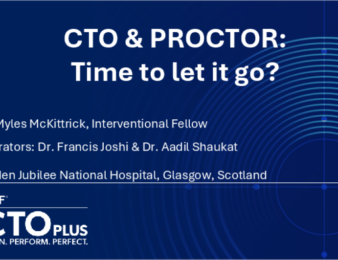 Presentation CTO 2026 CTO & PROCTOR: Time to Let It Go? Presenter: Myles McKittrick February 13, 2026 REGISTER for free or LOG IN to view this content CTO 2026 Up Next Presentation CTO 2026 Double Coronary Chronic Total Occlusion in a Patient With Occluded Aorta Presenter: Ahmed Al-Ogaili February 13, 2026 More slides + Presentation CTO 2026 CTO PCI: The Year in Review Presenter: Jesse Kane February 13, 2026 Presentation CTO 2026 Third Time’s the Charm Presenter: Anna Subramaniam February 13, 2026 We Recommend Disclosures <p>Nothing to disclose</p>