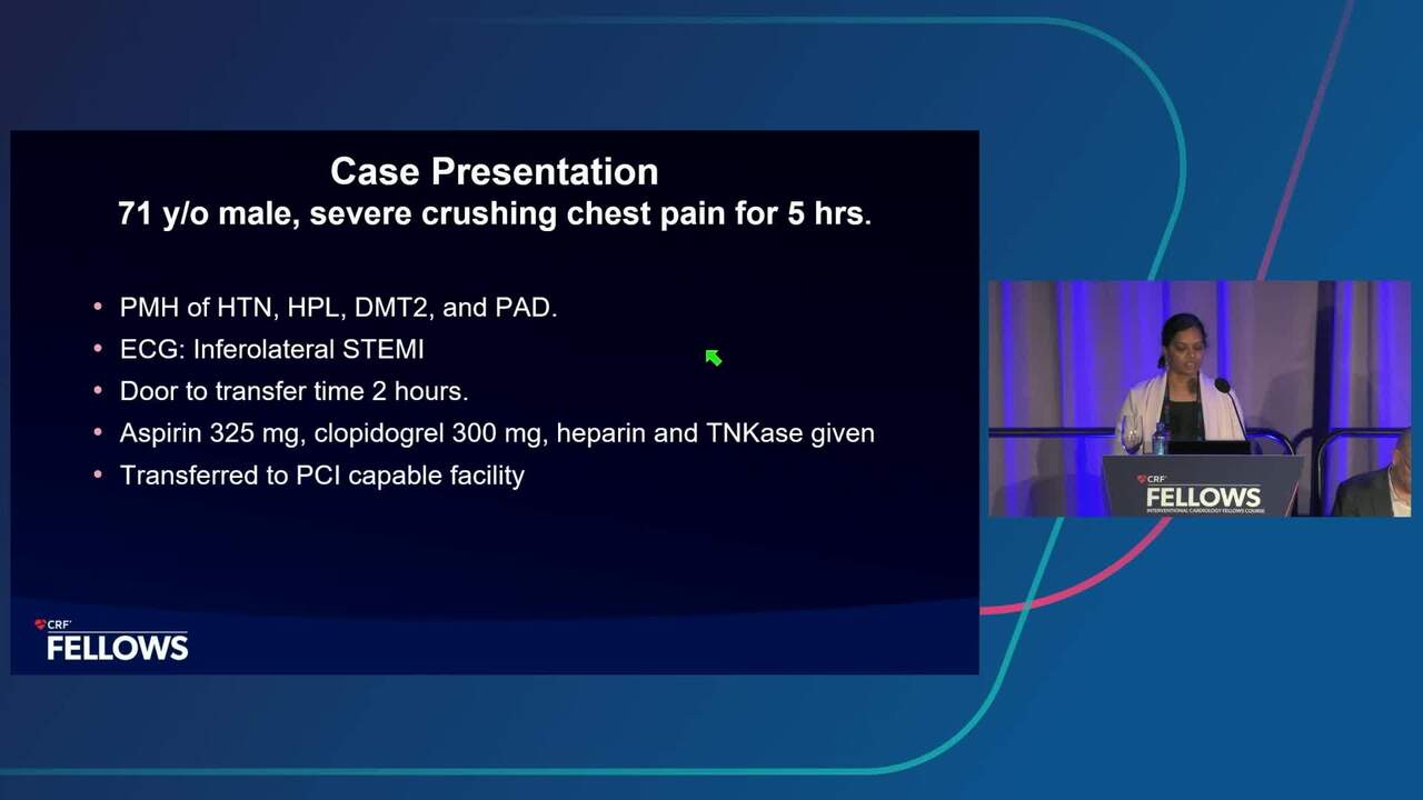 Presentation Fellows 2025 The Evolution in PCI Pharmacology: What You Need to Know Presenter: Anu Tunuguntla May 16, 2025 REGISTER for free or LOG IN to view this content Fellows 2025 Up Next Presentation Fellows 2025 Keynote Lecture: How a Thirst for Innovation Can Fuel Your Career Presenter: Juan F. Granada May 16, 2025 More slides + Presentation Fellows 2025 State-of-the-Art in NSTE-ACS: Management Strategies and Guidelines Update Presenter: Binita Shah May 16, 2025 Presentation Fellows 2025 Reperfusion Therapies in STEMI: Historical Perspective and Current Best Practices Presenter: Sanjog Kalra May 16, 2025 We Recommend Disclosures Nothing to disclose Video Player is loading.Play VideoPlaySkip BackwardSkip ForwardMuteCurrent Time 0:00/Duration 36:53Loaded: 0%00:00Stream Type LIVESeek to live, currently behind liveLIVERemaining Time -36:53 1xPlayback Rate2x1.75x1.5x1.25x1x, selected0.75x0.5xChaptersChaptersDescriptionsdescriptions off, selectedCaptionscaptions settings, opens captions settings dialogcaptions off, selectedAudio Tracken (Main), selectedPicture-in-PictureFullscreenThis is a modal window.Beginning of dialog window. Escape will cancel and close the window.TextColorWhiteBlackRedGreenBlueYellowMagentaCyanOpacityOpaqueSemi-TransparentText BackgroundColorBlackWhiteRedGreenBlueYellowMagentaCyanOpacityOpaqueSemi-TransparentTransparentCaption Area BackgroundColorBlackWhiteRedGreenBlueYellowMagentaCyanOpacityTransparentSemi-TransparentOpaqueFont Size50%75%100%125%150%175%200%300%400%Text Edge StyleNoneRaisedDepressedUniformDrop shadowFont FamilyProportional Sans-SerifMonospace Sans-SerifProportional SerifMonospace SerifCasualScriptSmall CapsResetDoneClose Modal DialogEnd of dialog window.Close Modal DialogThis is a modal window. This modal can be closed by pressing the Escape key or activating the close button.