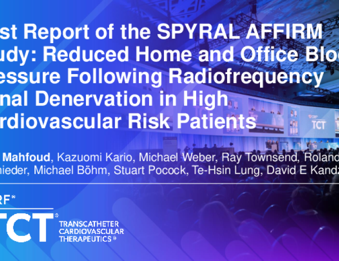 First Report of the SPYRAL AFFIRM Study: Reduced Home and Office Blood Pressure Following Radiofrequency Renal Denervation in a Large US Cohort of High Cardiovascular Risk Patients.