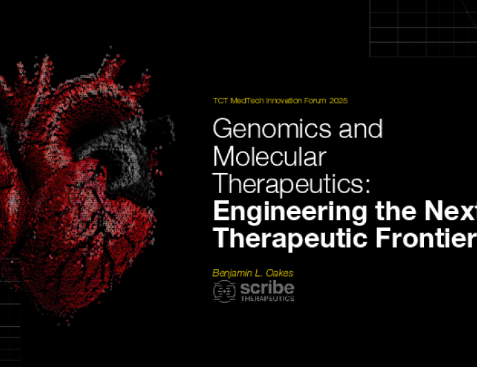 Presentation TCT 2025 Genomics and Molecular Therapeutics: Engineering the Next Therapeutic Frontier Presenter: Benjamin L. Oakes October 25, 2025 REGISTER for free or LOG IN to view this content TCT 2025 Up Next Presentation TCT 2025 ARS 1: The Art of Disruptive Innovation: Process or the Stroke of Genius Presenter: Andrew D. Cleeland October 25, 2025 More slides + Presentation TCT 2025 Keynote Lecture: Innovation in America: Are the Currents Shifting? Presenter: Jan Garfinkle October 25, 2025 Presentation TCT 2025 Introduction to the TCT® 2025 Shark Tank Innovation Competition. Presenter: Juan F. Granada October 25, 2025 We Recommend Disclosures <p>Nothing to disclose</p>