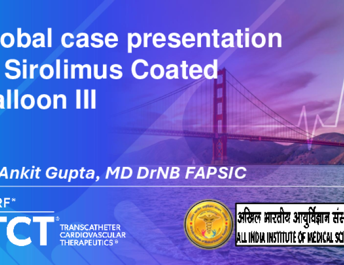 Presentation TCT 2025 Global case presentation of Sirolimus Coated Balloon III Presenter: Ankit Gupta October 27, 2025 REGISTER for free or LOG IN to view this content TCT 2025 Up Next Presentation TCT 2025 Can Adaptive and Single-Arm Studies Meet the Needs of Key Stakeholders? Presenter: Rasha Al-Lamee October 27, 2025 More slides + Presentation TCT 2025 Patient Selection and Shared Decision Making Presenter: Raymond R. Townsend October 27, 2025 Presentation TCT 2025 NCD Presenter: David E. Kandzari October 27, 2025 We Recommend Disclosures <p>Nothing to disclose</p>