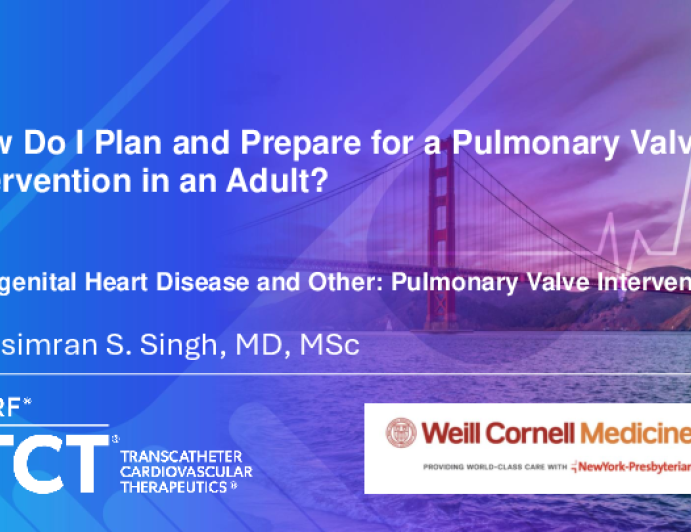 Presentation TCT 2025 How Do I Plan and Prepare for a Pulmonary Valve Intervention in an Adult? Presenter: Harsimran Sachdeva Singh October 28, 2025 REGISTER for free or LOG IN to view this content TCT 2025 Up Next Presentation TCT 2025 TCT 1765: Ostial Left Main CTO Impella-Assisted Intervention in An 80-Year-Old Patient With Severe Left Ventricular Dysfunction Presenter: Ali Ahmad October 28, 2025 More slides + Presentation TCT 2025 TCT 1764: CTO in Young Adults (MVD Disease Using Mechanical Circulatory Support) Presenter: Ahmed Ibrahim Hatata October 28, 2025 Presentation TCT 2025 TCT 1763: Complex Patient With Low Left Ventricular Ejection Fraction and Three-vessel Disease Presenter: Judit Karacsonyi October 28, 2025 We Recommend Disclosures <p>Nothing to disclose</p>