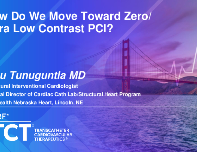 Presentation TCT 2025 How Do We Move Toward Zero-Contrast PCI? Presenter: Anu Tunuguntla October 26, 2025 REGISTER for free or LOG IN to view this content TCT 2025 Up Next Presentation TCT 2025 My Decision Process and Preparation for Aortic Leaflet Modification Presenter: John Thomas Saxon October 26, 2025 More slides + Presentation TCT 2025 TCT 1641: When Contrast Is a Luxury Presenter: Nancy Virginia October 26, 2025 Presentation TCT 2025 TCT 1642: Ultra-Low Contrast PCI in Multivessel Intervention Presenter: Sheena Lamba October 26, 2025 We Recommend Disclosures <p>Nothing to disclose</p>