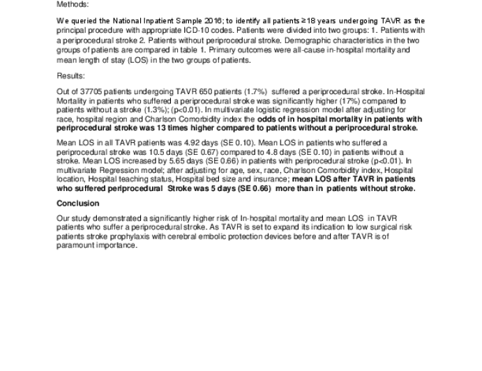 Incidence, predictors and outcomes of periprocedural stroke in patients undergoing TAVR: Report from National Inpatient sample