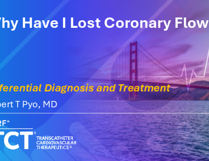 Presentation TCT 2025 Lecture with Case Illustration: Why Have I Lost Coronary Flow? Presenter: Robert T. Pyo October 28, 2025 REGISTER for free or LOG IN to view this content TCT 2025 Up Next Presentation TCT 2025 Lecture with Case Illustration: How to Respond to Hemodynamic Collapse During PCI Presenter: Ricardo Santiago October 28, 2025 More slides + Presentation TCT 2025 Lecture: Refractory Angina: Don’t Treat the Coronaries, Put in a Coronary Sinus Reducer Presenter: Timothy D. Henry October 28, 2025 Presentation TCT 2025 Pearls and Pitfalls of Left Main PCI Presenter: Duk-Woo Park October 28, 2025 We Recommend Disclosures <p>Nothing to disclose</p>