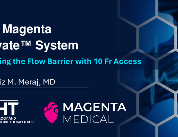 Presentation THT 2026 The Magenta Elevate Device Presenter: Perwaiz M. Meraj March 03, 2026 REGISTER for free or LOG IN to view this content THT 2026 Up Next Presentation THT 2026 The Vitalyst pVAD Presenter: Robert W. Yeh March 03, 2026 More slides + Presentation THT 2026 Percutaneous Pericardiotomy as a Treatment for HFpEF (Heart Failure Solutions) Presenter: Barry Borlaug March 03, 2026 Presentation THT 2026 Venstramedical: A Novel Low Profile Full Flow pVAD Presenter: Suku T. Thambar March 03, 2026 We Recommend Disclosures <p>Nothing to disclose</p>