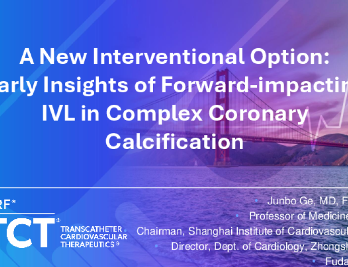 Presentation TCT 2025 A New Interventional Option: Early Insights of Forward-impacting IVL in Complex Coronary Calcification Presenter: Junbo Ge October 26, 2025 REGISTER for free or LOG IN to view this content TCT 2025 Up Next Presentation TCT 2025 Discussion and Q&A Presenter: Bruce Samuels October 26, 2025 More slides + Presentation TCT 2025 Coronary Sinus Reducer Mechanism of Action in CMD Presenter: Samit Mahendra Shah October 26, 2025 Presentation TCT 2025 A-FLUX Coronary Sinus Reducer - CMD Patient Case Presenter: Francesco Giannini October 26, 2025 We Recommend Disclosures <p>Nothing to disclose</p>