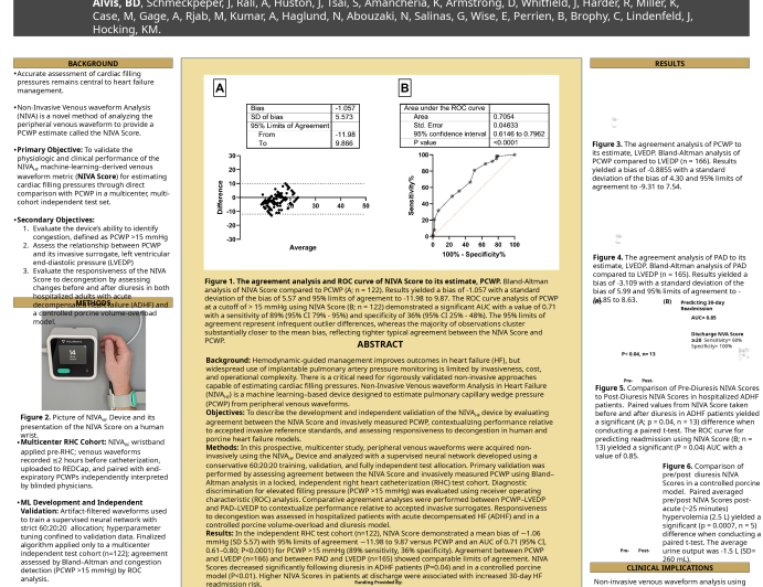 Non-Invasive Venous Waveform Analysis (NIVA) Scores Obtained with NIVAHF Demonstrate Agreement with Pulmonary Capillary Wedge Pressure (PCWP) Measurements in Patients Undergoing Right Heart Catheterization: A Multi-Site Study