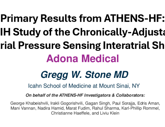 Primary Results from the ATHENS-HF Trial: An FIH Study of the Chronically-Adjustable, Biatrial Pressure Sensing Interatrial Shunt (Adona Medical)