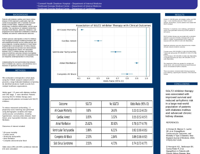 Presentation THT Abstracts 2026 Real-World Association of SGLT2 Inhibitors With Survival and Arrhythmic Risk in Advanced Cardio-Renal Disease Presenter: Mazen Ahmed March 02, 2026 REGISTER for free or LOG IN to view this content Heart Failure Heart Rhythm Presentation THT Abstracts 2026 Up Next Presentation THT Abstracts 2026 Practice Patterns of Discharge Medical Therapy after Acute Takotsubo Syndrome Presenter: Rohan Ganti March 02, 2026 More slides + Presentation THT Abstracts 2026 Potassium Levels and In-Hospital Mortality in Acute Heart Failure Presenter: Aarjuv Majmundar March 02, 2026 Presentation THT Abstracts 2026 Persistently Elevated Donor-Derived Cell-Free DNA After Heart Transplant: A Clinical Dilemma Presenter: David Golombeck March 02, 2026 We Recommend