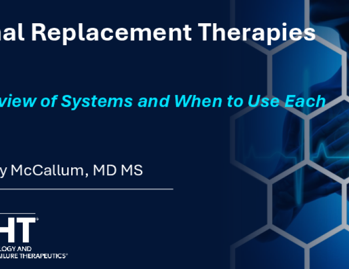 Presentation THT 2026 Renal Replacement Therapies: Overview of Systems and When to Use Each Presenter: Wendy McCallum March 03, 2026 REGISTER for free or LOG IN to view this content THT 2026 Up Next Presentation THT 2026 Pumps that Increase Renal Arterial Perfusion Pressure: Current Status and Future Directions Presenter: Robby Wu March 03, 2026 More slides + Presentation THT 2026 Reducing Renal Venous Pressure to Improve Urine Output: Overview of Devices, Current Status, and Future Directions Presenter: Arvind Bhimaraj March 03, 2026 Presentation THT 2026 The Lymphatic System as a Target for ADHF Presenter: Jan Biegus March 03, 2026 We Recommend Disclosures <p>Nothing to disclose</p>
