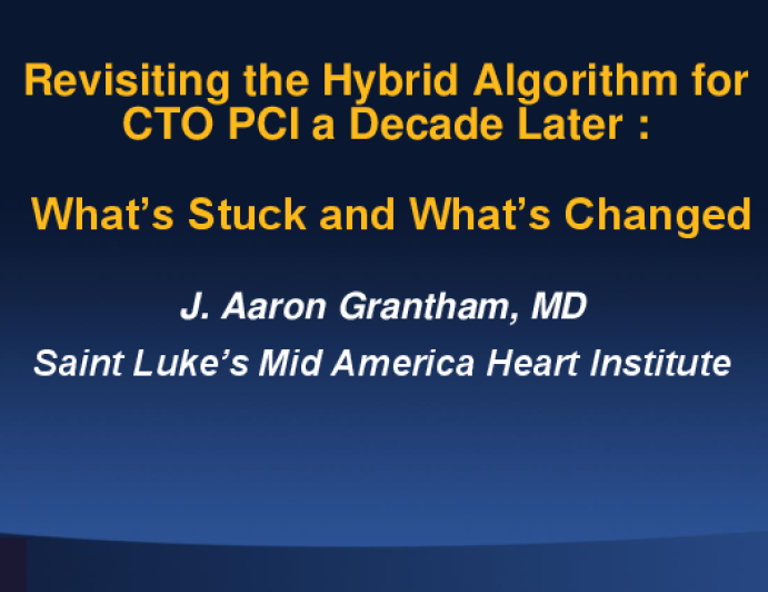 Presentation TCT 2025 Revisiting the Hybrid Algorithm for CTO PCI a Decade Later: What’s Stuck and What’s Changed? Presenter: J. Aaron Grantham October 26, 2025 REGISTER for free or LOG IN to view this content TCT 2025 Up Next Presentation TCT 2025 Managing Complications: The Critical Role of Intravascular Imaging Presenter: Rhian E. Davies October 26, 2025 More slides + Presentation TCT 2025 Clinical Perspective Presenter: Bruno Scheller October 26, 2025 Presentation TCT 2025 Intravascular Imaging in Stent Failure: A Must for Accurate Diagnosis and Treatment Presenter: Evan Shlofmitz October 26, 2025 We Recommend Disclosures <p>Nothing to disclose</p>