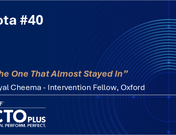 Presentation CTO 2026 Rota #40 “ The One That Almost Stayed In” Presenter: Faryal Cheema February 14, 2026 REGISTER for free or LOG IN to view this content CTO 2026 Up Next Presentation CTO 2026 When Retreat Isn’t an Option, Only Way Out Is to Advance, Connect and Finish Presenter: Harsh V. Thakkar February 14, 2026 More slides + Presentation CTO 2026 When Standard Retrograde Wire Escalation Fails: Epicardial Retrograde Crossing With Wire Escalation to Astato 40 and Snare Externalization in a Heavily Calcified Ostial RCA CTO Presenter: Nabila Mahdi February 14, 2026 We Recommend Disclosures <p>Nothing to disclose</p>