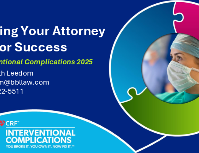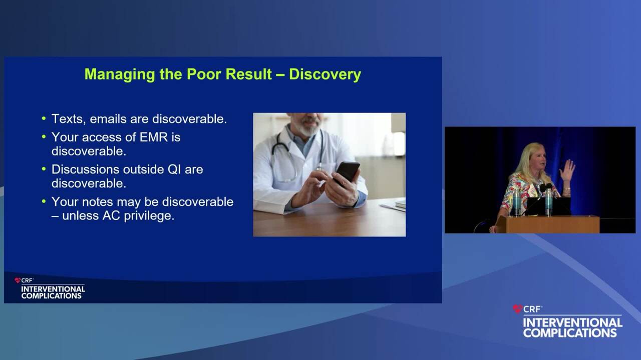 Presentation Interventional Complications 2025 Setting Your Attorney up for Success Presenter: Elizabeth A. Leedom July 11, 2025 REGISTER for free or LOG IN to view this content Interventional Complications 2025 Up Next Presentation Interventional Complications 2025 Battling a Toxic Environment at Work Presenter: Dimitrios Bliagos July 11, 2025 More slides + Presentation Interventional Complications 2025 I Am in Trouble (Hospital, Partners and/or Medical Staff) Presenter: Cynthia Rutzick July 11, 2025 Presentation Interventional Complications 2025 Developing Compassion in a Stressful Field Presenter: Ajay J. Kirtane July 11, 2025 We Recommend Disclosures Nothing to disclose Video Player is loading.Play VideoPlaySkip BackwardSkip ForwardMuteCurrent Time 0:00/Duration 0:00Loaded: 0%0:00Stream Type LIVESeek to live, currently behind liveLIVERemaining Time -0:00 1xPlayback Rate2x1.75x1.5x1.25x1x, selected0.75x0.5xChaptersChaptersDescriptionsdescriptions off, selectedCaptionscaptions settings, opens captions settings dialogcaptions off, selectedAudio TrackPicture-in-PictureFullscreenThis is a modal window.Beginning of dialog window. Escape will cancel and close the window.TextColorWhiteBlackRedGreenBlueYellowMagentaCyanOpacityOpaqueSemi-TransparentText BackgroundColorBlackWhiteRedGreenBlueYellowMagentaCyanOpacityOpaqueSemi-TransparentTransparentCaption Area BackgroundColorBlackWhiteRedGreenBlueYellowMagentaCyanOpacityTransparentSemi-TransparentOpaqueFont Size50%75%100%125%150%175%200%300%400%Text Edge StyleNoneRaisedDepressedUniformDrop shadowFont FamilyProportional Sans-SerifMonospace Sans-SerifProportional SerifMonospace SerifCasualScriptSmall CapsResetDoneClose Modal DialogEnd of dialog window.Close Modal DialogThis is a modal window. This modal can be closed by pressing the Escape key or activating the close button.