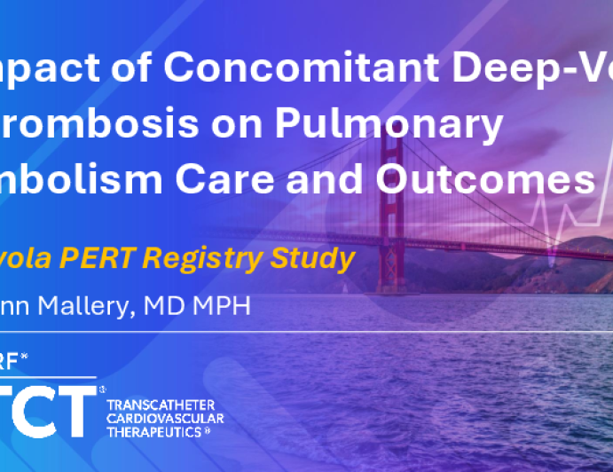 Presentation TCT 2025 TCT 1046: Impact of Concomitant Deep-Vein Thrombosis on Pulmonary Embolism Care and Outcomes Presenter: Quinn Mallery October 27, 2025 REGISTER for free or LOG IN to view this content TCT 2025 Up Next Presentation TCT 2025 TCT 971: Analysis of Impella and IABP Supported Elective HR-PCI Outcomes and EF Recovery in a Large U.S. Based Electronic Medical Record Database Presenter: Jason Wollmuth October 27, 2025 More slides + Presentation TCT 2025 TCT 968: Impella vs. IABP in High-Risk PCI Without Cardiogenic Shock: A Systematic Review and Meta-Analysis of Clinical Outcomes Presenter: AHMED K. ABDELRAHMAN October 27, 2025 Presentation TCT 2025 TCT 970: Microaxial flow pump versus extracorporeal membrane oxygenation in patients with ischemic left ventricular dysfunction undergoing elective complex and high-risk PCI: the REC-CHIPMCS randomized trial Presenter: Chao Gao October 27, 2025 We Recommend Disclosures <p>Nothing to disclose</p>