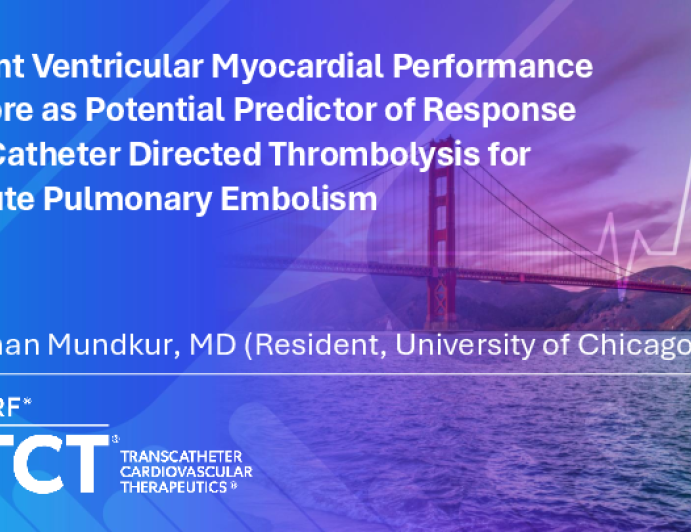 TCT 1053: Right Ventricular Myocardial Performance Score as Potential Predictor of Response to Catheter Directed Thrombolytics for Acute Pulmonary Embolism