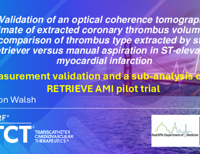 TCT 1076: Validation of an optical coherence tomography estimate of extracted coronary thrombus volume and a comparison of thrombus type extracted by stent-retriever versus manual aspiration in ST-elevation myocardial infarction