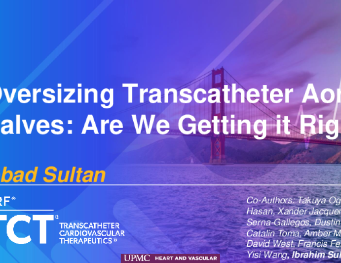 Presentation TCT 2025 TCT 1168: Oversizing in TAVR Valve Selection: Are We Getting the Size Right? Presenter: Abbad Sultan October 28, 2025 REGISTER for free or LOG IN to view this content TCT 2025 Up Next Presentation TCT 2025 TCT 493: Tailored Antiplatelet Therapy in High-Risk Diabetic Patients Undergoing Complex Percutaneous Coronary Intervention: The Prespecified Analysis of TAILORED-CHIP Trial Presenter: Seong-Bong Wee October 28, 2025 More slides + Presentation TCT 2025 TCT 624: Pre-procedural frailty scoring indices to predict delayed discharge and 1 year mortality following TAVI Presenter: Jacob Brubert October 28, 2025 Presentation TCT 2025 TCT 1171: Noncoronary sinus pivot implantation (NCPI) strategy for transcatheter aortic valve replacement with self-expanding valve in pure native aortic regurgitation: a multicenter, registry study from the CCA Database-NTCVR Presenter: Xiaochun Zhang October 28, 2025 We Recommend Disclosures <p>Nothing to disclose</p>