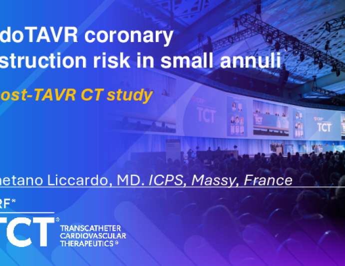 Presentation TCT 2025 TCT 1182: RedoTAVR Coronary Obstruction Risk in Small Annuli: A Post-TAVR CT Study Presenter: Gaetano Liccardo October 26, 2025 REGISTER for free or LOG IN to view this content TCT 2025 Up Next Presentation TCT 2025 TCT 1216: The GLIDE Score for 1-Year Outcomes Following Tricuspid Transcatheter Edge-to-Edge Repair Presenter: Felix Rudolph October 26, 2025 More slides + Presentation TCT 2025 TCT 1218: Early U.S. Experience With Transcatheter Tricuspid Edge‑to‑Edge Repair: Nationwide Outcomes From the 2022 National Inpatient Sample Presenter: Mustafa Tahir October 26, 2025 Presentation TCT 2025 TCT 1215: A New Treatment Pathway for Intermediate-Risk T-TEER Patients: Using the GLIDE Score to Guide Selection for Tricuspid Valve Replacement Presenter: Max Potratz October 26, 2025 We Recommend Disclosures <p>Nothing to disclose</p>