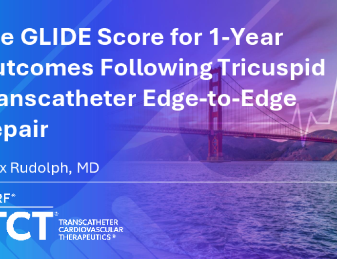 Presentation TCT 2025 TCT 1216: The GLIDE Score for 1-Year Outcomes Following Tricuspid Transcatheter Edge-to-Edge Repair Presenter: Felix Rudolph October 26, 2025 REGISTER for free or LOG IN to view this content TCT 2025 Up Next Presentation TCT 2025 TCT 1218: Early U.S. Experience With Transcatheter Tricuspid Edge‑to‑Edge Repair: Nationwide Outcomes From the 2022 National Inpatient Sample Presenter: Mustafa Tahir October 26, 2025 More slides + Presentation TCT 2025 TCT 1215: A New Treatment Pathway for Intermediate-Risk T-TEER Patients: Using the GLIDE Score to Guide Selection for Tricuspid Valve Replacement Presenter: Max Potratz October 26, 2025 Presentation TCT 2025 TCT 1217: Right Ventricular Pressure Volume Loops in Tricuspid Valve Repair Presenter: Hannah Kempton October 26, 2025 We Recommend Disclosures <p>Nothing to disclose</p>