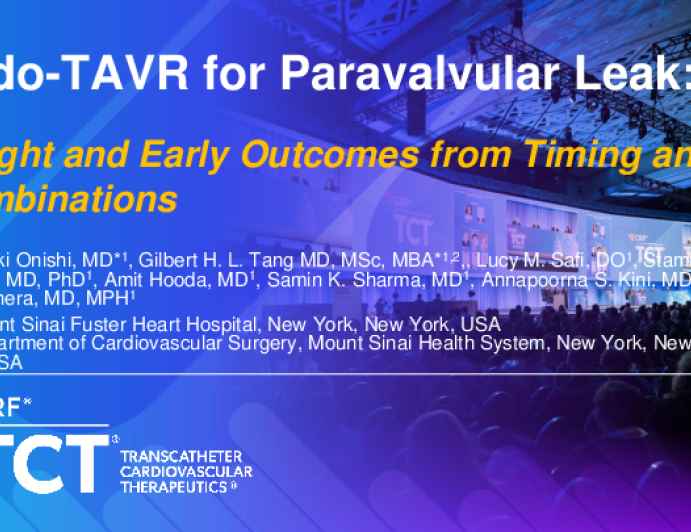 Presentation TCT 2025 TCT 1227: Redo-TAVR for Paravalvular Leak: Insight and Early Outcomes from Timing and Combinations Presenter: Takayuki Onishi October 27, 2025 REGISTER for free or LOG IN to view this content TCT 2025 Up Next Presentation TCT 2025 TCT 1225: Clinical Impact of Single- versus Multi-Access Technique for Valve-in-Valve Transcatheter Aortic Valve Replacement. Presenter: Cesar Eduardo Soria Jimenez October 27, 2025 More slides + Presentation TCT 2025 TCT 1229: New-Onset Conduction Abnormalities Following Valve-in-Valve Transcatheter Aortic Valve Replacement (TAVR) Presenter: Judah Rajendran October 27, 2025 Presentation TCT 2025 TCT 875: Parametric Finite Element Modeling of Reinforced Polymeric Leaflets for Improved Durability Presenter: SUSAN JAMES October 27, 2025 We Recommend Disclosures <p>Nothing to disclose</p>