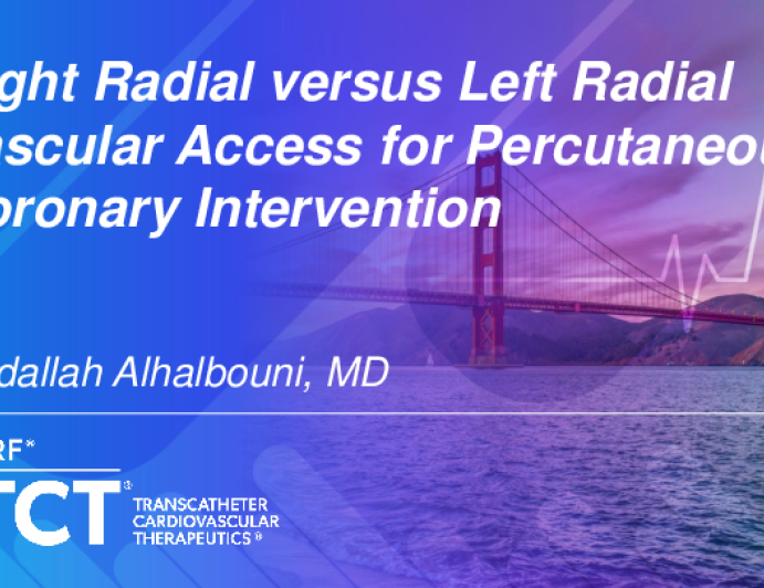 Presentation TCT 2025 TCT 1234: Right radial versus Left radial Vascular Access for Percutaneous Coronary Intervention Presenter: Abdallah Alhalbouni October 27, 2025 REGISTER for free or LOG IN to view this content TCT 2025 Up Next Presentation TCT 2025 TCT 1231: Comparison of Micropuncture Versus Ultrasound-Guided Arterial Access Techniques: A Systematic Review of Patient Outcomes and Procedural Safety Presenter: Mehmet Cilingiroglu October 27, 2025 More slides + Presentation TCT 2025 TCT 712: Evaluating Antithrombotic Therapy Variations Post-Left Atrial Appendage Occlusion: A Retrospective TriNetX Study Presenter: FNU Parul October 27, 2025 Presentation TCT 2025 TCT 713: Outcomes of Left Atrial Appendage Occlusion vs. Direct Oral Anticoagulants in Atrial Fibrillation: A Systematic Review and Meta-Analysis Presenter: Zeyad Kholeif October 27, 2025 We Recommend Disclosures <p>Nothing to disclose</p>