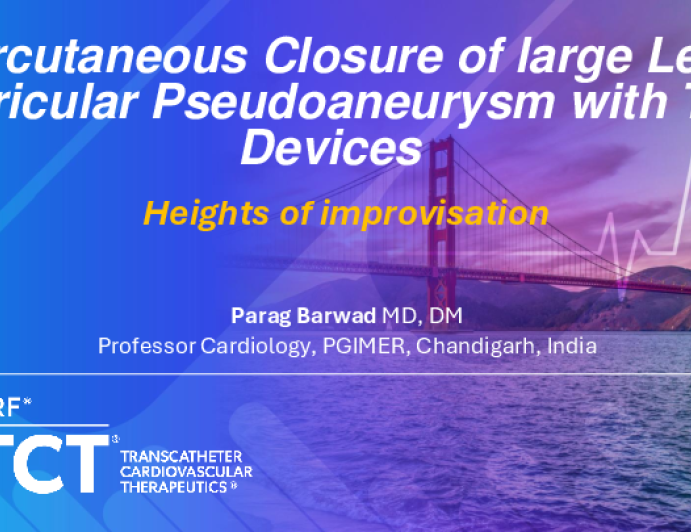 TCT 1301: Percutaneous Closure of a Giant LV Pseudoaneurysm and Revascularization to RCA in a Non Surgical Candidate With Severe LV Dysfunction