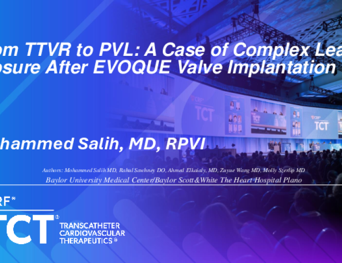 Presentation TCT 2025 TCT 1309: From TTVR to PVL: A Case of Complex Leak Closure After EVOQUE Valve Implantation Presenter: Mohammed Salih October 25, 2025 REGISTER for free or LOG IN to view this content TCT 2025 Up Next Presentation TCT 2025 TCT 1476: Percutaneous Mitral Paravalvular Leak Closure: 3D Printing in Treatment Planning Presenter: Roger Renault Godinho October 25, 2025 More slides + Presentation TCT 2025 Tips and Tricks on Recognition and Management of Mitral PVL Presenter: Vlasis Ninios October 25, 2025 Presentation TCT 2025 TCT 1356: Dislodged but Not Lost: Retrieval of an Amplatzer Vascular Plug II Presenter: Ayesha Rehman October 25, 2025 We Recommend Disclosures <p>Nothing to disclose</p>