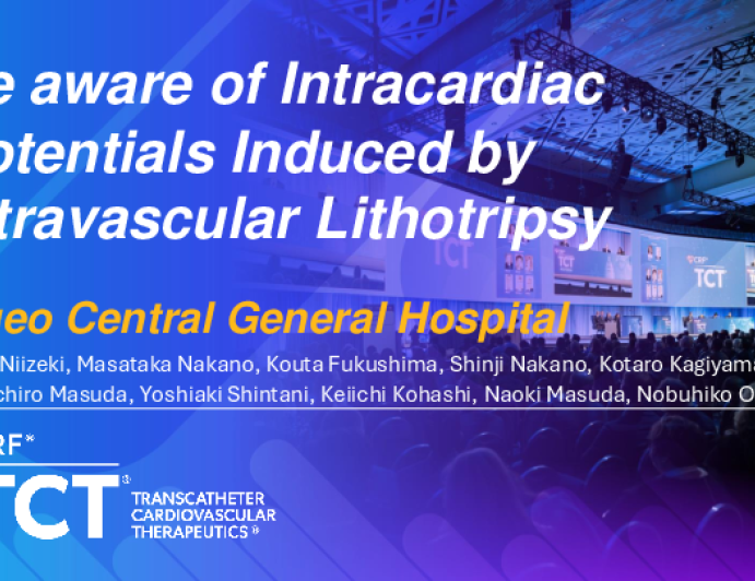 Presentation TCT 2025 TCT 131: Beaware of Intracardiac Potentials Induced by Intravascular Lithotripsy Presenter: Daiki Niizeki October 26, 2025 REGISTER for free or LOG IN to view this content TCT 2025 Up Next Presentation TCT 2025 TCT 312: Patent Foramen Ovale and Red Blood Cell Dysfunction: Quantifying Morphotype-Dependent Risk via Computational Fluid Dynamics Presenter: Daniela Trabattoni October 26, 2025 More slides + Presentation TCT 2025 TCT 316: Duct Stenting versus Surgical Shunting in Patients with Congenital Duct-dependent Heart Disease. Presenter: Ananya Prasad October 26, 2025 Presentation TCT 2025 TCT 416: The association between quantitative plaque burden and coronary computed tomography angiography-derived physiological patterns in patients with severe coronary artery disease Presenter: TsungYing Tsai October 26, 2025 We Recommend Disclosures <p>Nothing to disclose</p>