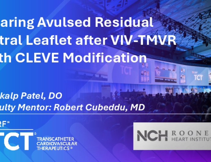 Presentation TCT 2025 TCT 1313: Snaring Avulsed Residual Mitral Leaflet After Valve-in-Valve TMVR With CLEVE Modification Presenter: Sankalp P. Patel October 25, 2025 REGISTER for free or LOG IN to view this content TCT 2025 Up Next Presentation TCT 2025 TCT 7: Global and Regional Trends in Rheumatic Heart Disease -Related Mortality from 2000 to 2019: Insight from World Health Organization database Presenter: Vikash Jaiswal October 25, 2025 More slides + Presentation TCT 2025 TCT Shark Tank Award Winner Announcement Presenter: Robert S. Schwartz October 25, 2025 Presentation TCT 2025 Economics and Reimbursements Pathways for Advanced and Novel Cardiovascular Interventions Presenter: Jay S. Giri October 26, 2025 We Recommend Disclosures <p>Nothing to disclose</p>