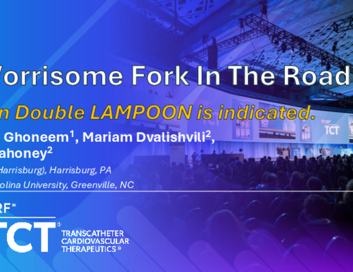 Presentation TCT 2025 TCT 1314: Worrisome Fork in the Road: When Double LAMPOON Is Indicated Presenter: Ahmed Ghoneem October 25, 2025 REGISTER for free or LOG IN to view this content TCT 2025 Up Next Presentation TCT 2025 TCT 1316: Mind the Gap: Posterior Mitral Leaflet Cleft Closure Using Transcatheter Edge-to-Edge Repair Presenter: Moody M. Makar October 25, 2025 More slides + Presentation TCT 2025 TCT 1317: Preventing Sinus Sequestration in a Failed Evolut With ShortCut: A Dedicated Leaflet Modification Device Presenter: Bassem M. Chehab October 25, 2025 Presentation TCT 2025 TCT 1300: Refractory Hypoxemia After Inferior STEMI Presenter: Lluis Asmarats October 25, 2025 We Recommend Disclosures <p>Nothing to disclose</p>