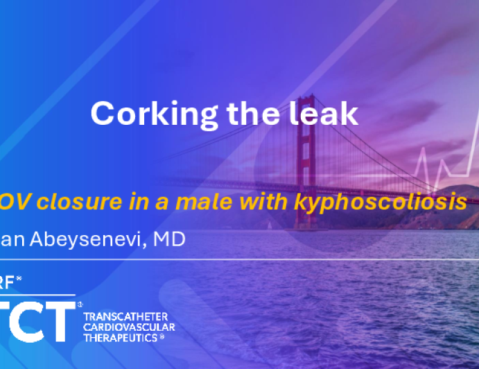 Presentation TCT 2025 TCT 1327: Corking the Leak Presenter: Wickramasinghe Wasala Mudiyanselage Pasan Aminda Bandara Abeysenevi October 28, 2025 REGISTER for free or LOG IN to view this content TCT 2025 Up Next Presentation TCT 2025 CT Coronary Angiography in Diagnosis and Treatment Gudance: The Fifth Revolution? Presenter: Patrick W. Serruys October 28, 2025 More slides + Presentation TCT 2025 TCT 1326: From Heart to Gut: Off-Label Use of an Amplatzer VSD Occluder for Gastrocutaneous Fistula Closure Presenter: Kyle Miller October 28, 2025 Presentation TCT 2025 TCT 1325: Coiling of an Ascending Aortic Pseudoaneurysm Using CTA-Fluoroscopy Fusion Guidance Presenter: Cristian Rodriguez October 28, 2025 We Recommend Disclosures <p>Nothing to disclose</p>