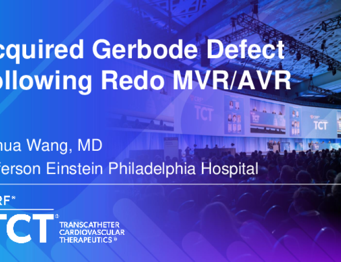 Presentation TCT 2025 TCT 1336: Acquired Gerbode Defect Following Redo MVR/AVR Presenter: Enhua Wang October 27, 2025 REGISTER for free or LOG IN to view this content TCT 2025 Up Next Presentation TCT 2025 TCT 1337: Percutaneous Transcatheter Occlusion of Acquired Gerbode Defect After TAVR Presenter: Alec Miller October 27, 2025 More slides + Presentation TCT 2025 TCT 1446: CLEVE-UNICORN Technique to Prevent Coronary Obstruction After TAVR in Native Valves: A Word of Caution Presenter: Jean-Benoît Veillette October 27, 2025 Presentation TCT 2025 TCT 1447: Antegrade Aortic Valve-in-Valve and Double Chimney Stenting for Failed Sutureless Aortic Valve With Perceval-Induced Left Ventricular Pseudoaneurysm Presenter: Lluis Asmarats October 27, 2025 We Recommend Disclosures <p>Nothing to disclose</p>