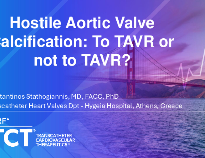 Presentation TCT 2025 TCT 1395: Hostile Aortic Valve Calcification: To TAVR or Not to TAVR? Presenter: Konstantinos Stathogiannis October 25, 2025 REGISTER for free or LOG IN to view this content TCT 2025 Up Next Presentation TCT 2025 Reconciling Evidence and Practice for a Patient With Bicuspid Aortic Valve Presenter: Radoslaw Parma October 25, 2025 More slides + Presentation TCT 2025 TCT 1392: High-Risk TAVR in Cardiogenic Shock Due to Heavily Calcified Bicuspid Aortic Valve Disease Complicated by Root Rupture Presenter: Pradeep Nadeswaran October 25, 2025 Presentation TCT 2025 TCT 1393: TAVR in Bicupsid Mega-annulus With VSD Presenter: Tulika Garg October 25, 2025 We Recommend Disclosures <p>Nothing to disclose</p>