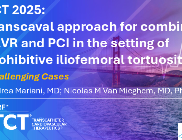 Presentation TCT 2025 TCT 1398: Transcaval Approach for Combined TAVR and PCI in the Setting of Prohibitive Iliofemoral Anatomy Presenter: Andrea Mariani October 25, 2025 REGISTER for free or LOG IN to view this content TCT 2025 Up Next Presentation TCT 2025 TCT 1400: Fixing the Dislodged Peripheral Stent With Two Covered Stents During TAVI: The Dread of a Tavilogist Presenter: Erhan Tenekecioglu October 25, 2025 More slides + Presentation TCT 2025 My Personal Guide to Left Atrial Thrombosis Presenter: Pedro Arturo Villablanca October 25, 2025 Presentation TCT 2025 TCT 1367: From Clot to Clear: AngioVac Extraction of Massive Left Atrial Appendage Thrombus Presenter: Rishi Sukhija October 25, 2025 We Recommend Disclosures <p>Nothing to disclose</p>